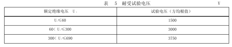在按5.8進(jìn)行試驗(yàn)時(shí),母線槽及其饋電箱應(yīng)能耐受表5規(guī)定的工頻電壓,歷時(shí)1min無擊穿和閃絡(luò)。
