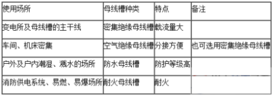 按照不同的使用場所選擇合適母線槽,見表1