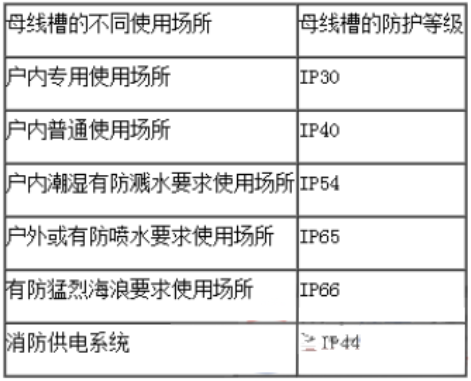 母線槽的防護等級應(yīng)根據(jù)不同的使用場所進行確定,見表2