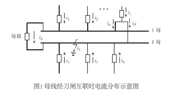 b.某一單元倒閘過(guò)程中,兩把刀閘都已閉合,而保護(hù)裝置沒(méi)有切換入互聯(lián)狀態(tài)。由于此時(shí)兩條母線槽已經(jīng)將兩把刀閘連在一起,部分電流流過(guò)刀閘而不經(jīng)過(guò)母聯(lián)TA,如果仍然判分差電流選擇切除母線槽,將降低保護(hù)靈敏度或延長(zhǎng)故障切除時(shí)間。