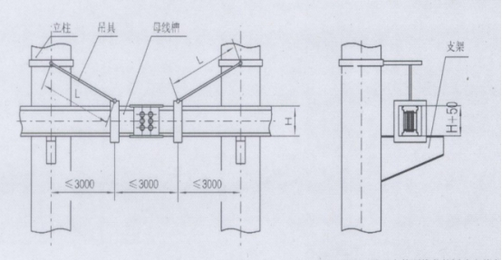 母線槽靠墻設備安裝時,兩個設備安裝支架之間的距離應不大于3m