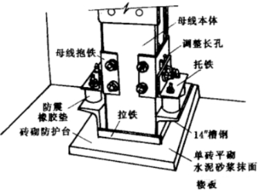 4.5封閉式母線(xiàn)槽筆直安裝。沿墻或柱子處,應(yīng)做固定支架,過(guò)樓板處應(yīng)加裝防震安裝,并做防水臺(tái)(圖7)。