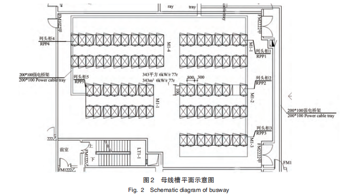6.銜接盒接線盒能夠在母線槽主體上裝置,接線盒內(nèi)置操控空開及給機柜供電的插座?,F(xiàn)在職業(yè)上,接線盒在母線槽主體上裝置,大多數(shù)均支持熱插拔方法,靈敏卡位固定,方便隨時為擴容負載供給電氣銜接。接線盒在母線槽主體上詳細裝置方位職業(yè)上基本由兩種設(shè)計狀況,固定裝置和靈敏裝置,Sch?neider 等供應商選用固定式方位裝置,即母線槽主體上每隔 600 mm 預留一個裝置孔位供給接線盒裝置。PDI、Startline等供應商可在主體上任何方位裝置。對不同尺度規(guī)格機柜擺放而言,無疑后者愈加合適機房的設(shè)計。 2. 7.監(jiān)控模塊監(jiān)控模塊分為結(jié)尾及主控單元兩部分。結(jié)尾單元為機房母線槽通過在端部饋電模塊、接線盒等部件裝備智能化電量儀等電氣收集模塊,可即時收集功率、電流、電壓等電氣數(shù)據(jù)。主控單元包含硬件主控單元和軟件辦理平臺。機房母線槽設(shè)計本文以某約 300 平米的電力機房為例,進行母線槽計劃和傳統(tǒng)列頭柜計劃設(shè)計比較。該區(qū)域可安置 9列機柜,每個列頭柜對就近兩列機柜供電,每個機柜尺度為800 mm×1 100 mm。如圖2所示。