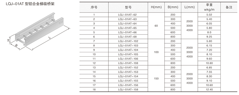 鋁合金電纜橋架在某種結(jié)構(gòu)形式中無(wú)其它結(jié)構(gòu)形式中的某-種產(chǎn)品類(lèi)別,選型可作代用表示。例如:在LQU-CC型槽式鋁合金電纜橋架結(jié)構(gòu)形式中,無(wú)鋁合金配線(xiàn)橋架中的LPC-03D, 即表示為LFC-CC-03D。