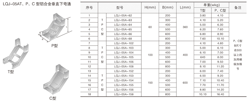 鋁合金電纜橋架在某種結(jié)構(gòu)形式中無(wú)其它結(jié)構(gòu)形式中的某-種產(chǎn)品類別,選型可作代用表示。例如:在LQU-CC型槽式鋁合金電纜橋架結(jié)構(gòu)形式中,無(wú)鋁合金配線橋架中的LPC-03D, 即表示為LFC-CC-03D。