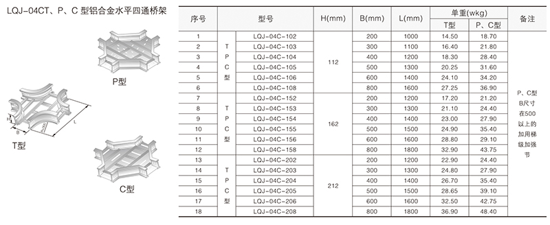 鋁合金電纜橋架在某種結(jié)構(gòu)形式中無其它結(jié)構(gòu)形式中的某一種產(chǎn)品類別,選型可作代用表示。例如:在LQU-CC型槽式鋁合金電纜橋架結(jié)構(gòu)形式中,無鋁合金配線橋架中的LPC-03D, 即表示為LFC-CC-03D。